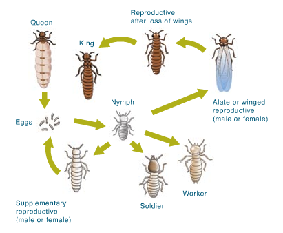 วรรณะสืบพันธุ์ alates หรือ reproductives ปีกมีสองคู่ของปีกที่มีขนาดเท่ากัน Alates มีสายตาทำงานได้อย่างสมบูรณ์และสามารถทนต่อการคายน้ำ นี้วรรณะโดยเฉพาะอย่างยิ่งมักจะเข้าใจผิดสำหรับมดบิน, ข้อผิดพลาดที่ให้ผลลัพธ์เป็นจำนวนมากไม่ทราบว่าปลวกที่มีอยู่ในบริเวณใกล้เคียงของสถานที่ให้บริการของพวกเขา